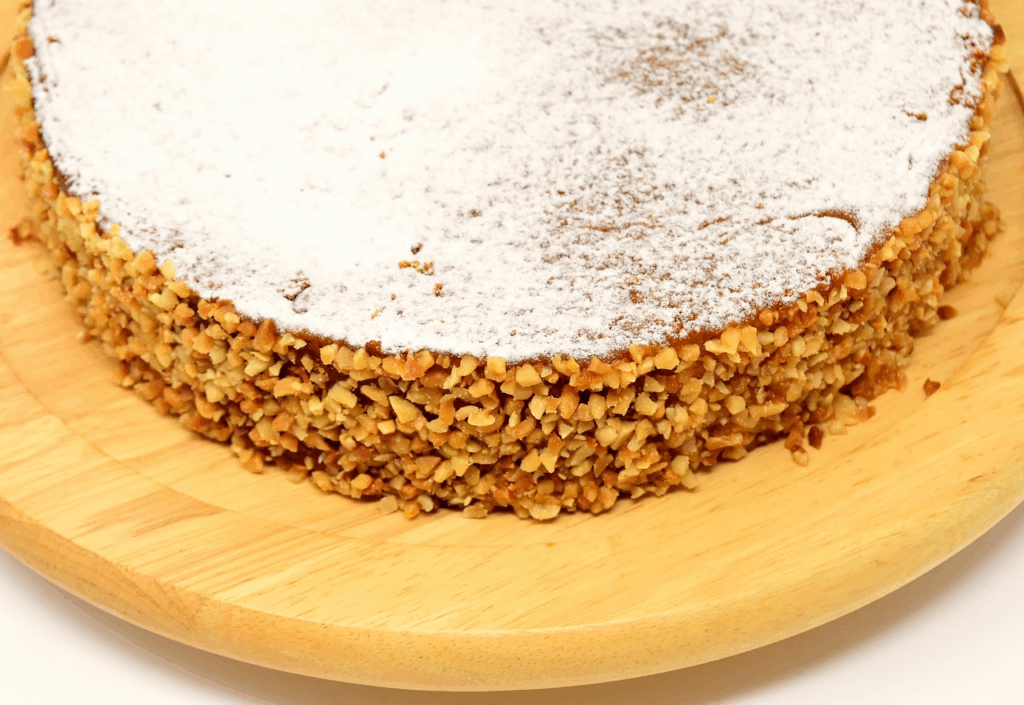5. Kad se kolač ohladi, možete ga preliti kremom od sira i limuna ili jednostavno posuti šećerom u prahu.